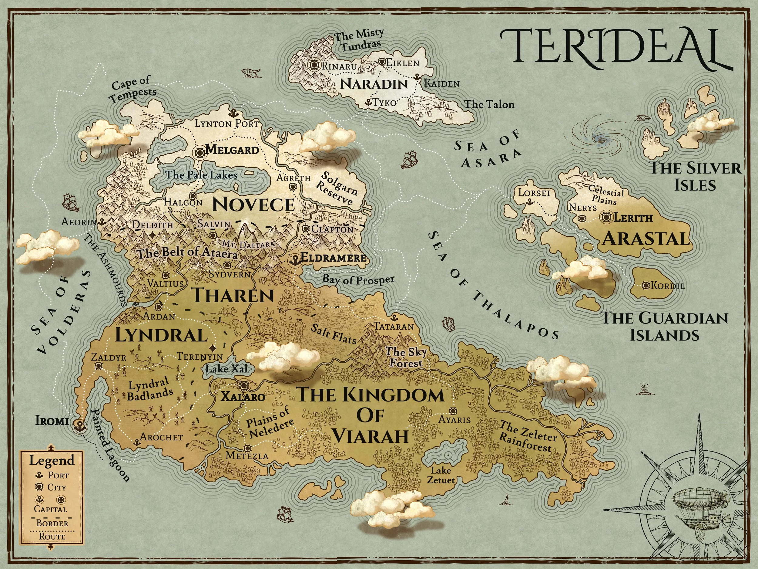 Home to three continents, six nations, and a host of mythical creatures and colorful characters, Terideal is a vibrant world with a tumultuous history of wonder and ruin.